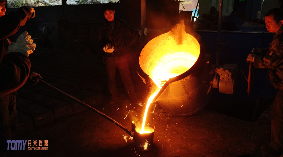 灰铁熔化期的温度不宜过高,一般控制在1500℃以下。如果熔化温度过高,合金的烧损或还原会影响熔炼后期的成分调整。在炉料熔清炉温达1460℃后,取样倏地测验,而后扒净渣,再加入铁合金等残余的炉料。扒渣温度对铁水质量的影响很大,它与稳定的化学成分、孕育效果密切相关,并直接影响到出炉温度的控制。扒渣温度过高,会加剧铁水石墨晶核的烧损和硅的还原、偏高(酸性炉衬中),并产生排碳作用,影响按稳定系结晶;若扒渣温度过低,铁水长时间袒露,C、Si烧损严重,需再次调整成分,延长了冶炼时间,并使铁水过热,增大过冷度,易使成分失控,损坏正常 结晶。 出炉温度的控制须保障孕育处理和浇注的最佳温度,个别应根据实际情形控制出炉温度为 1460~1500℃,过热温度可控制在 1510~1530℃,并静置5~8min。在1500~1550℃范畴内,提高铁水的过热温度,延伸高温静置时间,会细化石墨和基体组织,提高铸铁的强度,有利于孕育处理,打消气孔、夹杂缺陷和炉料遗传性给铸铁的组织和性能带来的不良影响。如果静置温渡过低、时光过短,增碳剂不能完整溶入铁水中,也不利于铁水的杂质上浮被挑渣除去。但过热温度过高或高温静置时间过长,反而会恶化石墨形态、粗化基体、增大过冷度、加大白口倾向,使铁水已有的异质 核心消散,氧化重大,降低铸铁的性能,并影响出炉温度的控制。如果出炉温度过高,尽管C、Si含量适中,浇注三角试块的白口深度会过大或核心部位涌现麻口。假如呈现这种情况,需调低中频功率,向炉内补加生铁降温增碳。 浇注温度也不宜高,否则会使铸件产生严峻的粘砂缺陷,有的甚至难以清算而使铸件报废,而且浇注温度高,过冷度大,不利于A型石墨的形成。浇注温度如果过低,则不利于除气,还会造成 铸件偏硬和出现冷隔、轮廓不清等问题。适当稍低的浇注温度,铁水液态压缩量较小,有助于减少 缩孔,失掉致密的铸件。不同壁厚,不同分量的铸件有着不同的幻想浇注温度,在日常生产中正常 控制浇注温度在1450~1380℃。对厚大铸件必需要确保“高温出炉,低温快浇”。为了缩短等候 铁水温度降至浇注温度的时间,防止孕育衰退,可以通过倒包加静置的方法使铁水疾速降温,以防止产生缩松,提高生产效率。 3 硫和氮的控制